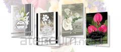 Kartka jest bogato i różnorodnie zdobiona (zależnie od wzoru: metaliczna folia, lakier perłowy,