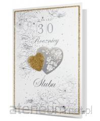 Kartka jest bogato i różnorodnie zdobiona (zależnie od wzoru: metaliczna folia, lakier perłowy, brokat, przyklejone elementy 3D - wypukłe wstawki papierowe, elementy biżuteryjne, tłoczenia). Kartka zawiera życzenia i kolorowy środek. W zestawie znajduje się koperta, kolorystycznie uzupełniająca się z kartką. Format złożonej kartki: 13x19 cm.