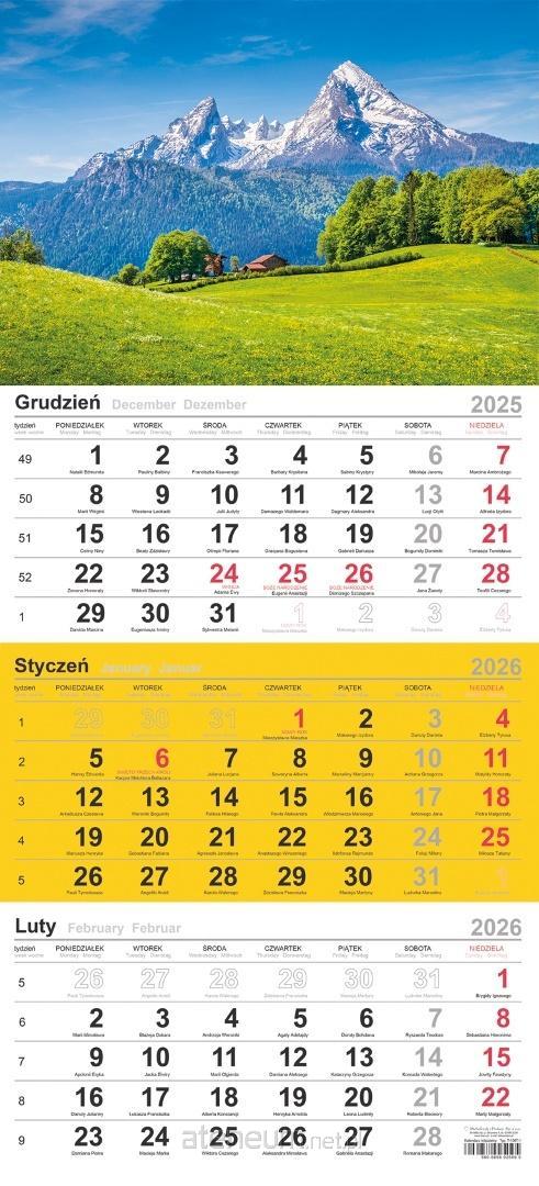 Główka pełnokolorowa, okienko przesuwane, nazwy miesięcy i tygodni w wersjach językowych.