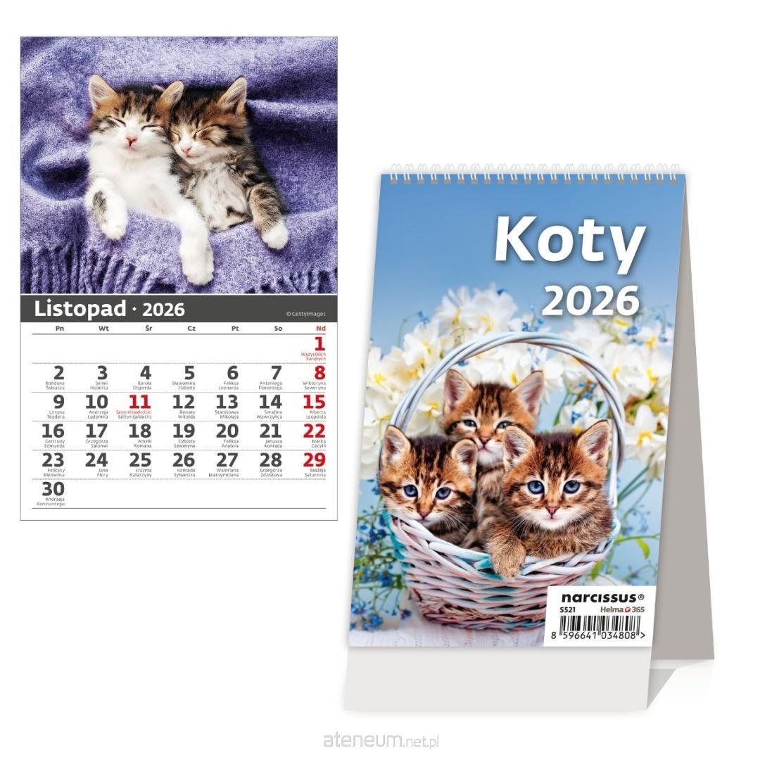 Kalendarz 2026 Biurkowy Pionowy Koty miesięczny