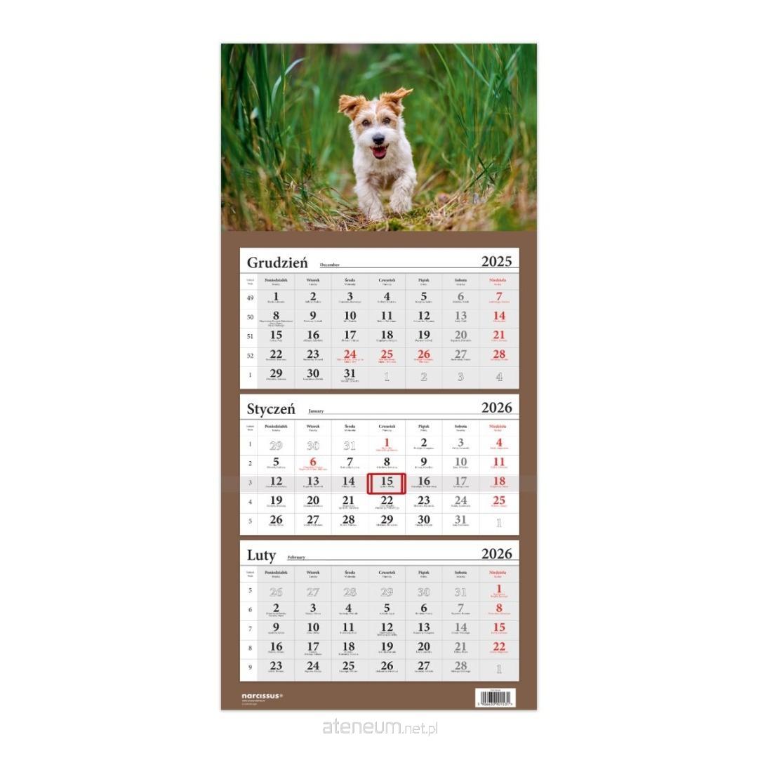 Klasyczny kalendarz trójdzielny na 2026 rok, podłużny, z opaską z przesuwnym okienkiem do zaznaczenia wskazanego dnia. Kalendarz można złożyć w 3 miejscach. Zawiera 3 odrębne, zrywane kalendaria po 12 kartek. Kalendarz jest zapakowany w folię ochronną.