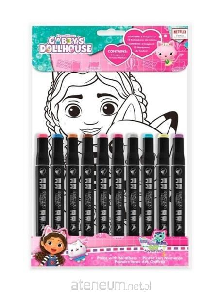 Zestaw kreatywny Gabby's Dollhouse to bogaty zestaw do kreatywnej zabawy dla dziecka. 10 dwustronnych flamastrów,2 kartki do rysowania po numerkach.