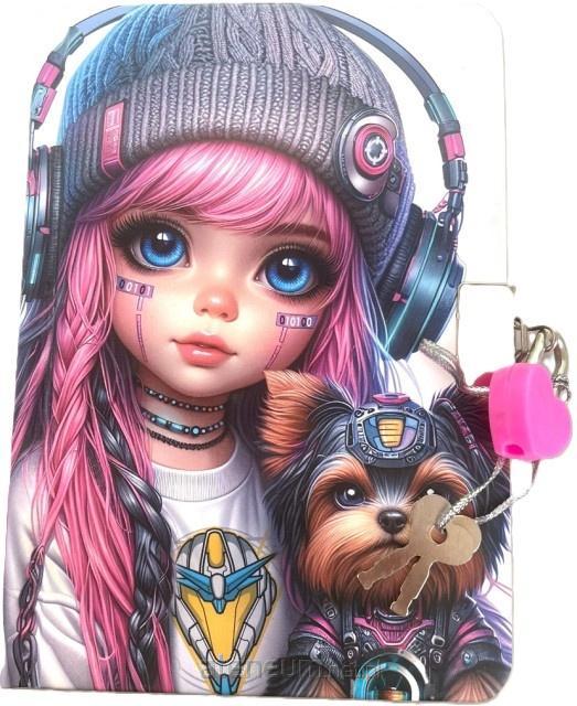 Pamiętnik z kłódką A6/64K gładki Dziewczynka z pie