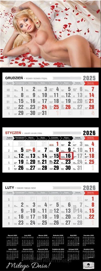 Kalendarz Trójdzielny PREMIUM Z WYPUKŁĄ GŁÓWKĄ. Format 315/810mm. Trzy komplety klasycznych kalendariów z przesuwnym okienkiem. Główka z otworem wierconym. Dodatkowo nazwy miesiąca i dni tygodnia w języku Ukraińskim, Angielskim i Niemieckim. Kalendarium dodatkowo zawiera fazy księżyca i znaki zodiaku. Dużo miejsca do notowania, czytelne duże litery i cyfry. DODATKOWO PRZEDŁUŻONE PLECKI KOLOREM DOPASOWANE DO WZORU ZE SKRÓCONYM KALENDARIUM NA ROK 2026.