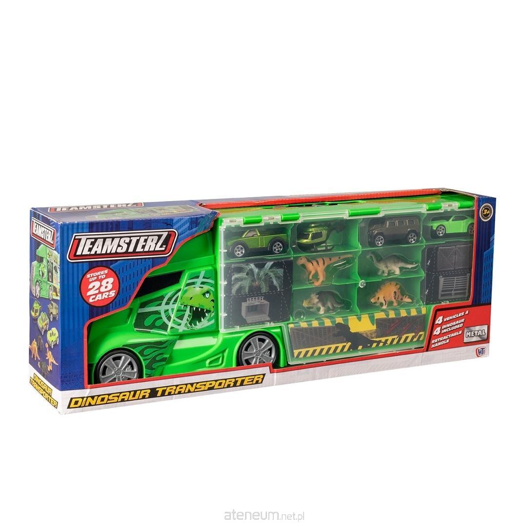 Przeszłość i teraźniejszość zderzają się z Teamsterz - Transporter Dinosaur ! Ten duży przyciągający wzrok transportowiec z motywem dinozaurów jest idealny do przechowywania wszystkich ulubionych samochodów! Pomieści aż 28 autek. Pojazd zachwyci każdego miłośnika dinozaurów! Transportowiec posiada swobodnie poruszające się koła oraz specjalny uchwyt, za pomocą którego w łatwy i szybki sposób można przenosić zabawkę! Pojazd jest wyposażony w 4 pojazdy, 4 plastikowe dinozaury i szereg tekturowych akcesoriów drogowych. Wszystkie pojazdy Teamsterz posiadają wysokiej jakości ciśnieniowo odlewany korpus oraz swobodnie poruszające się koła. To idealny zestaw dla każdego zapalonego małego kierowcy, oferujący godziny pomysłowej zabawy! Każdy pojazd dopasowany jest idealnie do małych rączek dziecka dzięki czemu wspomaga jego rozwój i zdolności motoryczne.