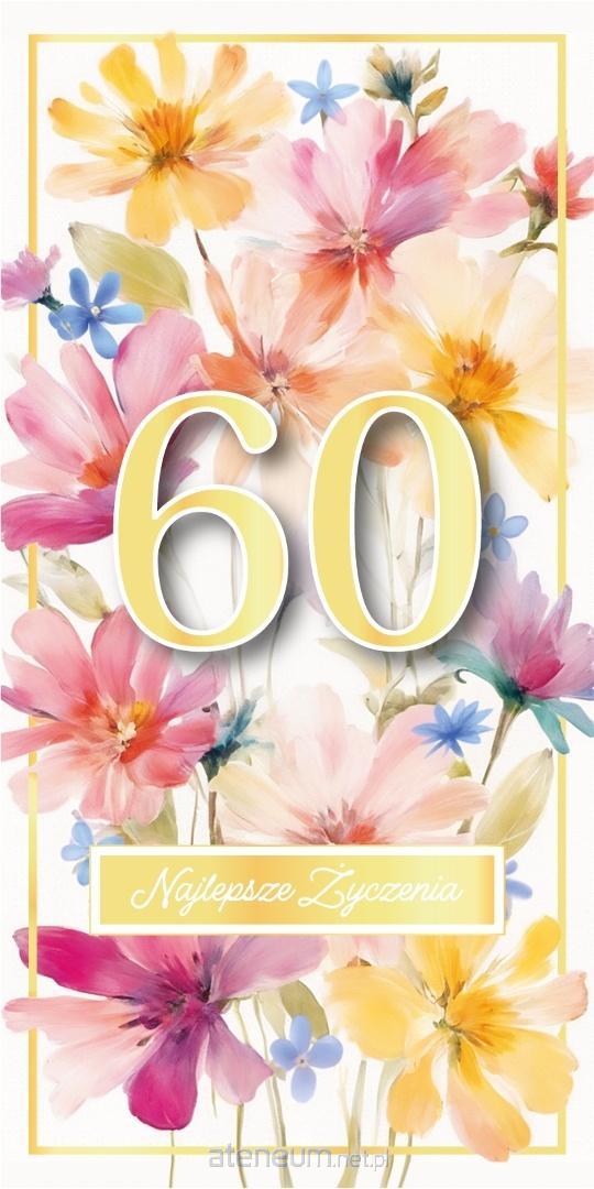 Karnet kwadrat mały z kopertą Urodziny 60 świeczki