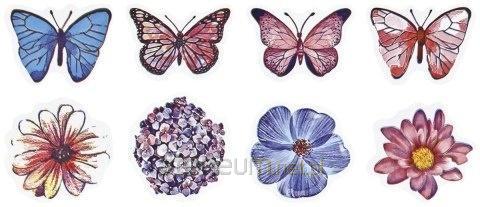Naklejki papierowe na taśmie 8 wzorów motyle, kwiaty mix rozmiarów 500szt.