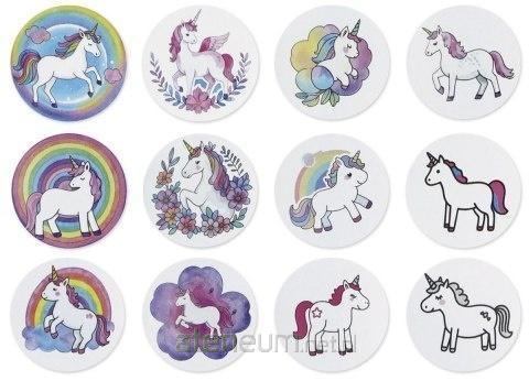Naklejki papierowe na taśmie 12 wzorów jednorożce O25mm 500szt.