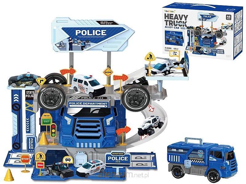 parking - baza policyjna, metalowe pojazdy, 46 części, wym.rozłożonego 35x35x28cm; 31x20x14cm, Box