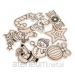 Ozdoby drewniane z magnesem 4-6 cm 9szt