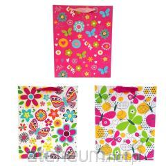 Torebka prezentowa uniwersalna L Kwiaty motyle MIX