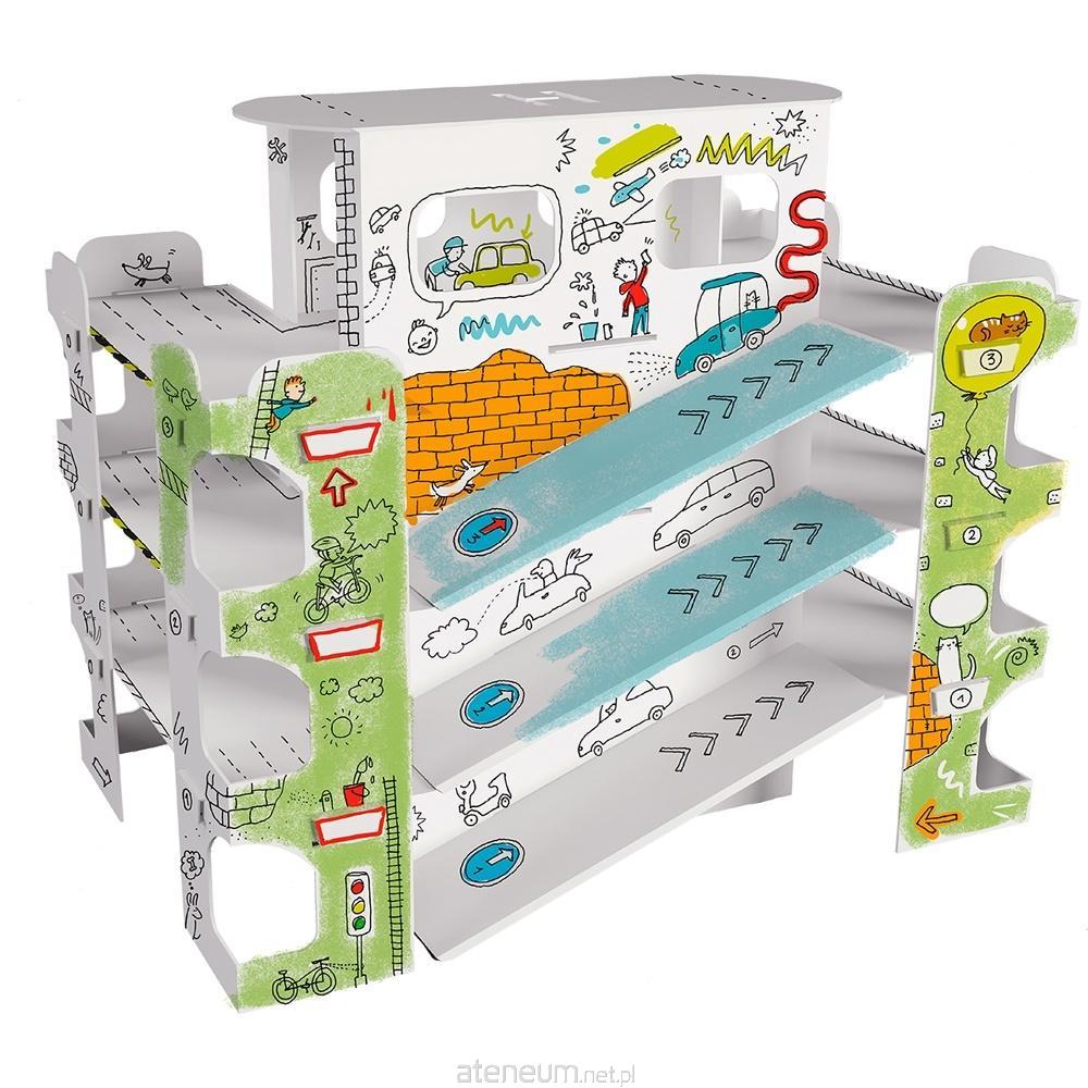 Zestaw zawiera wszystkie elementy potrzebne do stworzenia trójwymiarowego parkingu oraz instrukcję, która w prosty sposób pokazuje, jak krok po kroku złożyć i pokolorować projekt.