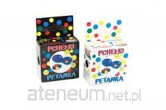 Trzyczęściowa deska do curlingu/shuffleboardu, zawierająca 16 krążków w dwóch kolorach i zasady gry. Elementy są połączone paskami magnetycznymi.