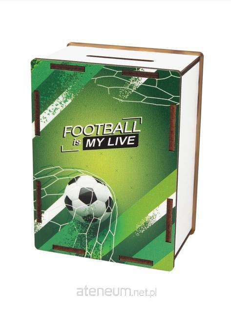 Drewniana, ekologiczna skarbonka dla chłopaka z grafiką o tematyce piłkarskiej. Posiada specjalny otwór na górze do wrzucania monet i banknotów. Skarbonka CRESCO to świetny prezent, który uczy oszczędności młodego człowieka. Skarbonka nie zawiera zawartości, ale po zakupie jest od razu gotowa na przyjecie gotówki :) Skarbonka sprzedawana jest już złożona w opakowaniu foliowym.Football