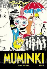 Pierwszy tom zawiera części: "Muminki i duża powódź", "Kometa nad Doliną Muminków", "W Dolinie Muminków", "Pamiętniki Tatusia Muminka" i "Lato Muminków".