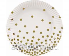 Talerzyki pap. białe Groszki złote 18cm 6szt