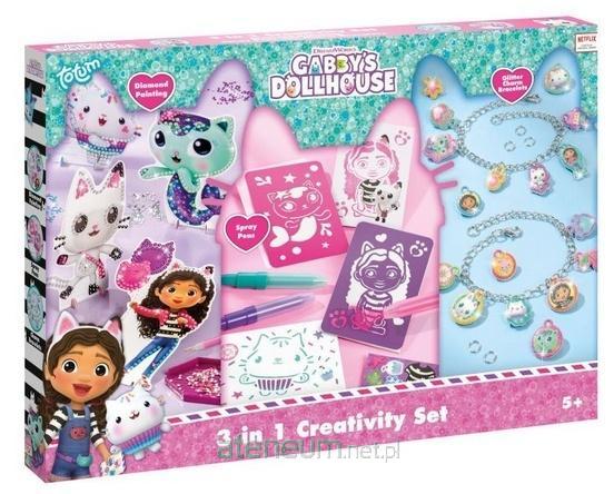 Zestaw kreatywny z bajki Koci Domek Gabi to rozbudowana propozycja, która umożliwi nie tylko stworzenie bransoletek z przywieszkami, ale tez wykonanie przepięknych rysunków z wykorzystaniem dołączonych szablonów i pisaków. Wszystkie elementy posiadają zdobienia z wizerunkami ulubionych bohaterów, dzięki czemu małe miłośniczki Gabi i jej kocich przyjaciół jeszcze chętniej przystąpią do wspólnej zabawy. 35 naklejek 2D z brokatową powłoką ozdobią biżuterię, czyniąc z niej przepiękne uzupełnienie dziecięcej stylizacji. A może czas stworzyć rysunek z Kiciusiem Pandusiem w roli głównej?