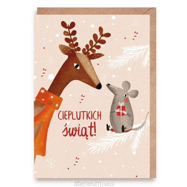 Kartka świąteczna Cieplutkich Świąt z reniferem i myszką