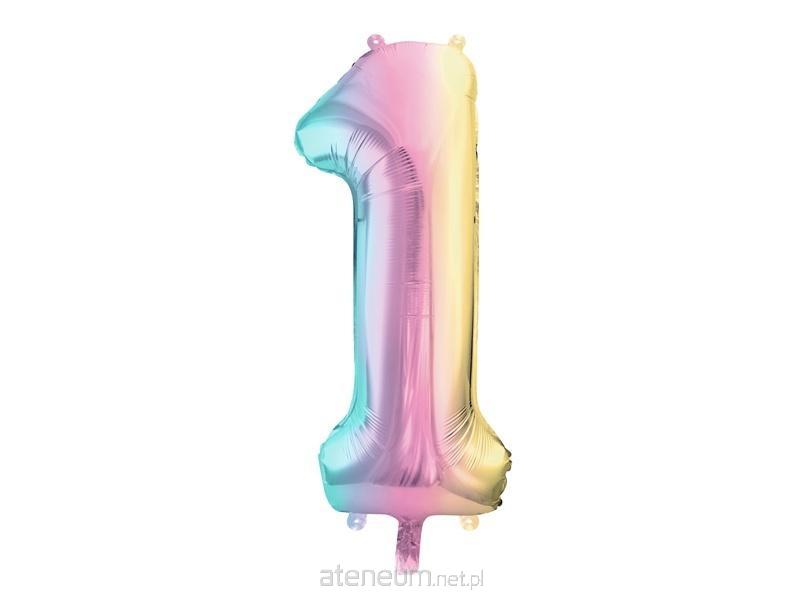 Balon foliowy Cyfra ''1'' w kolorze pastelowym tęczowym , rozmiar przed napompowaniem ok. 100 cm (39''), rozmiar po napompowaniu ok. 86 cm (34''). Do napompowania powietrzem i helem. Zestaw zawiera słomkę.