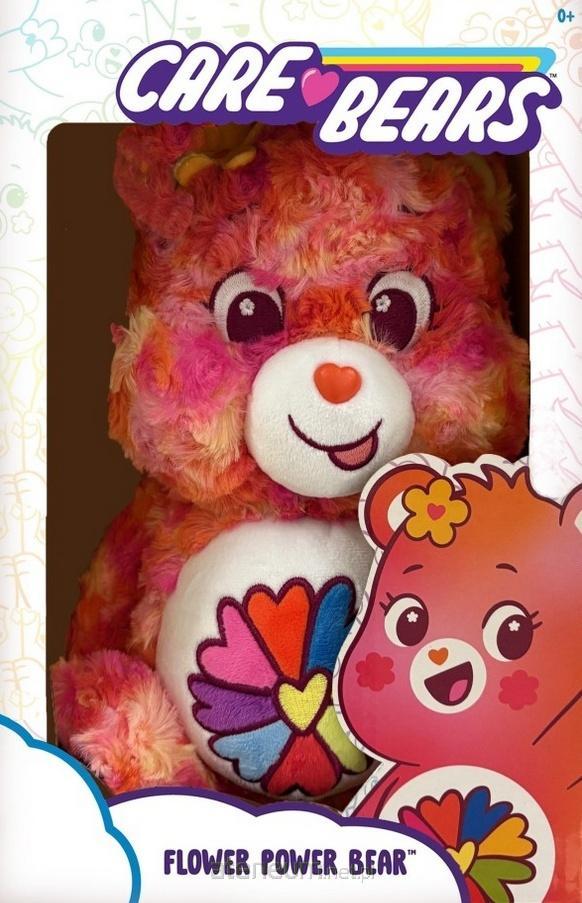 Pluszowa maskotka z bajki "Troskliwe Misie". Znaczkiem misia jest kwiat z płatkami w kształcie kolorowych serc. Ten uroczy miś uwielbia wąchać kwiaty i zachwyca się każdym żywym stworzonkiem. Opakowanie: pudełko, wysokość: 35 cm; 0m+