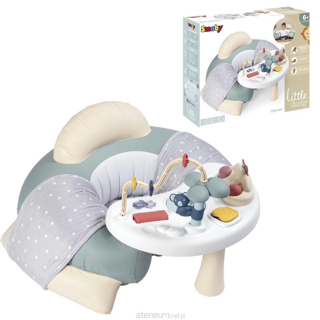 Nadmuchiwane siedzonko z zagłówkiem i podłokietnikami z materiałową osłonką. W komplecie odczepiany stolik na trzech nóżkach z wieloma funkcjami do zabawy, które wspomagają rozwijanie motoryki u dzieci. Wymiary: 66x70x41,8 cm, 6 m+