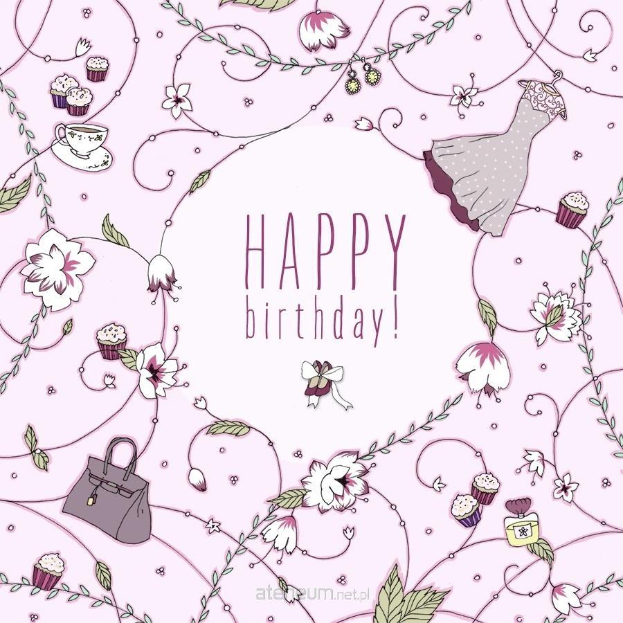 Karnet Swarovski kwadrat Urodziny różowe