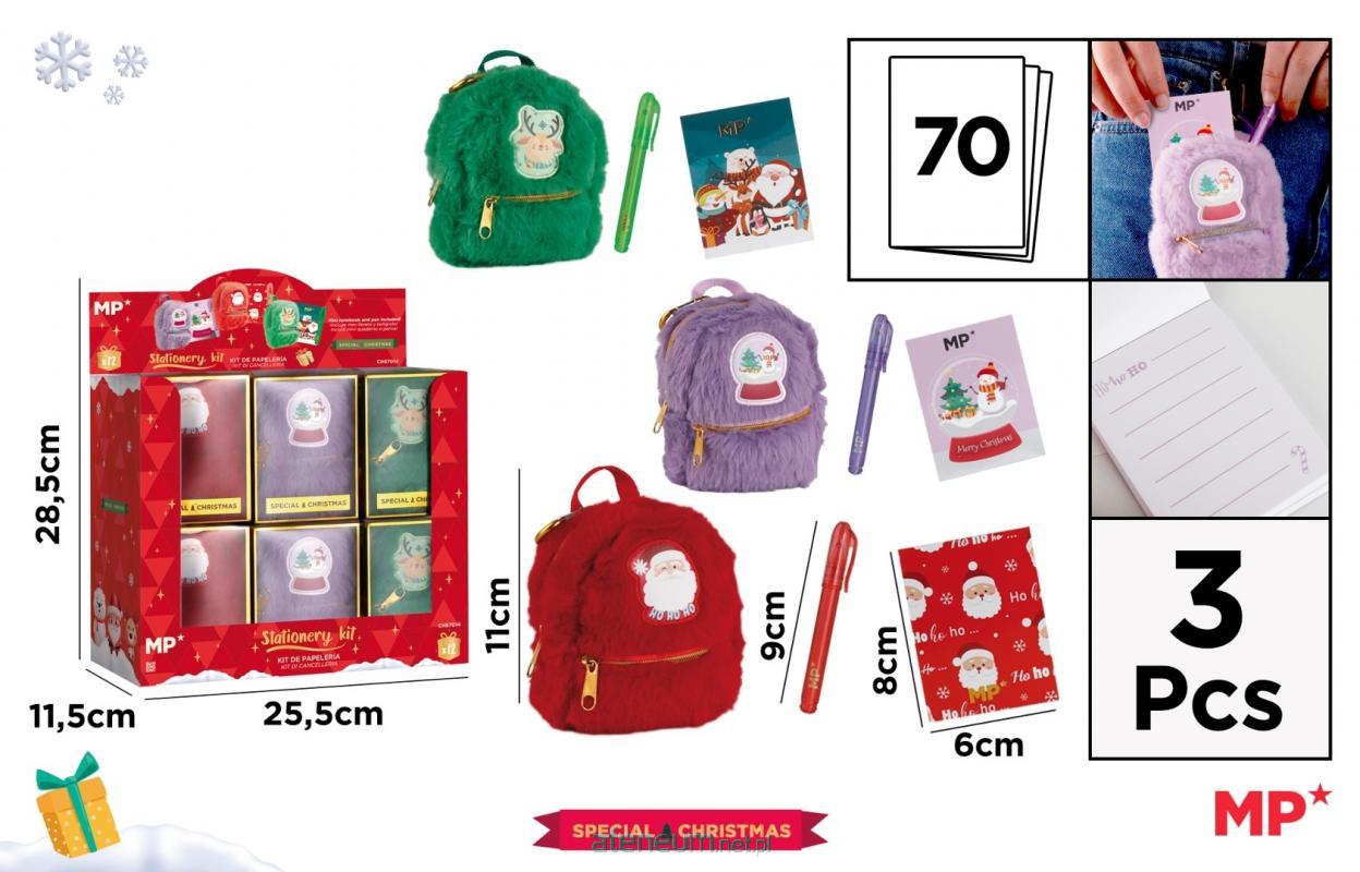 Mini plecak z brelokiem, zawierający mały notatnik i mini długopis. Całość w pudełku PET.