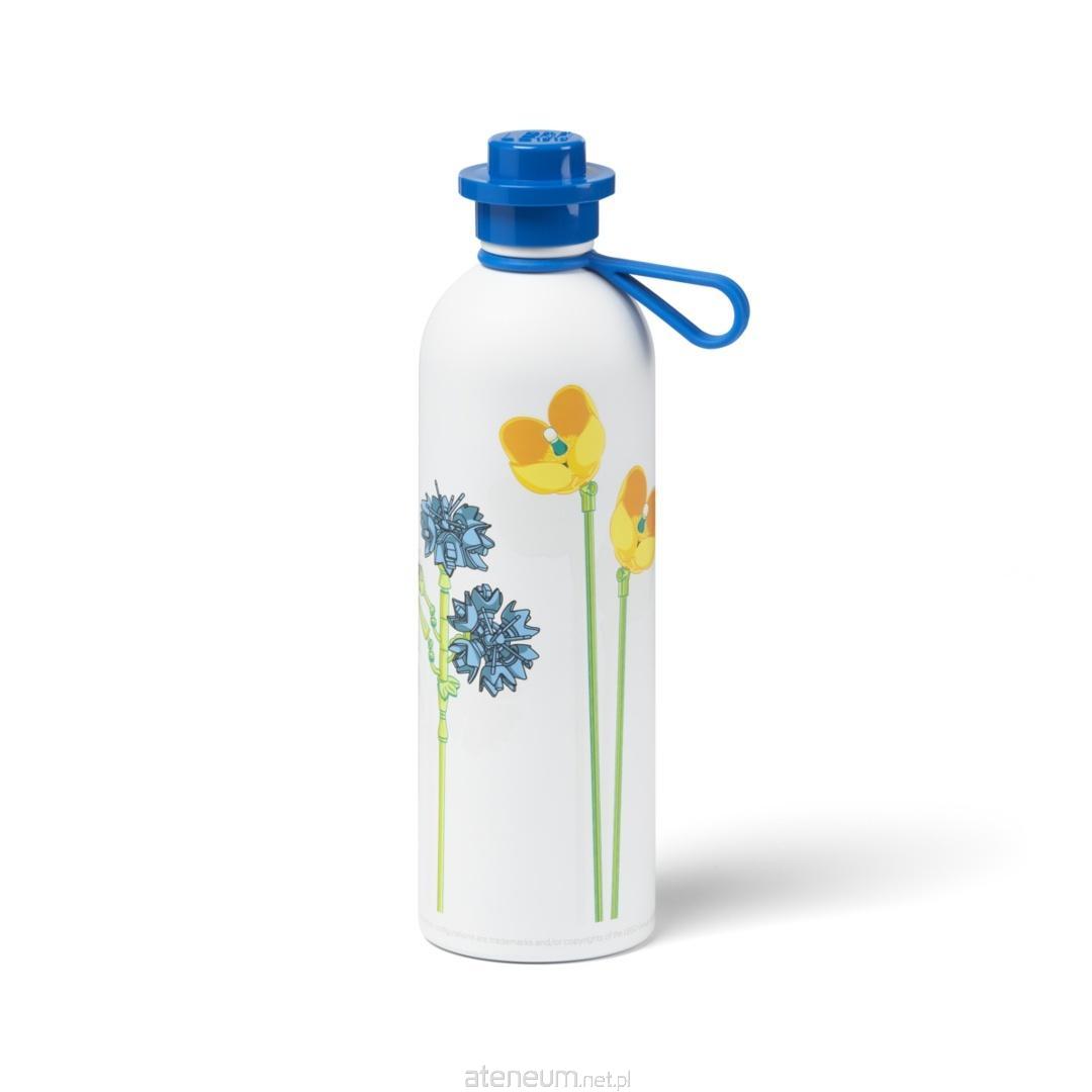 Butelka termiczna LEGO® z zakrętka w kształcie klocka w kolorze białym z motywem wild flowers o pojemności 560 ml.
