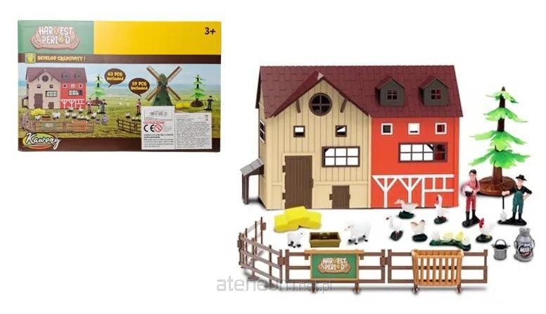 Traktor rolniczy z przyczepą i figurkami zwierząt