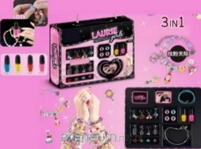 Zestaw piękności 3w1: bransoletki + charmsy + lakiery do paznokci w walizeczce rozm opak 23,5x5x18,5cm