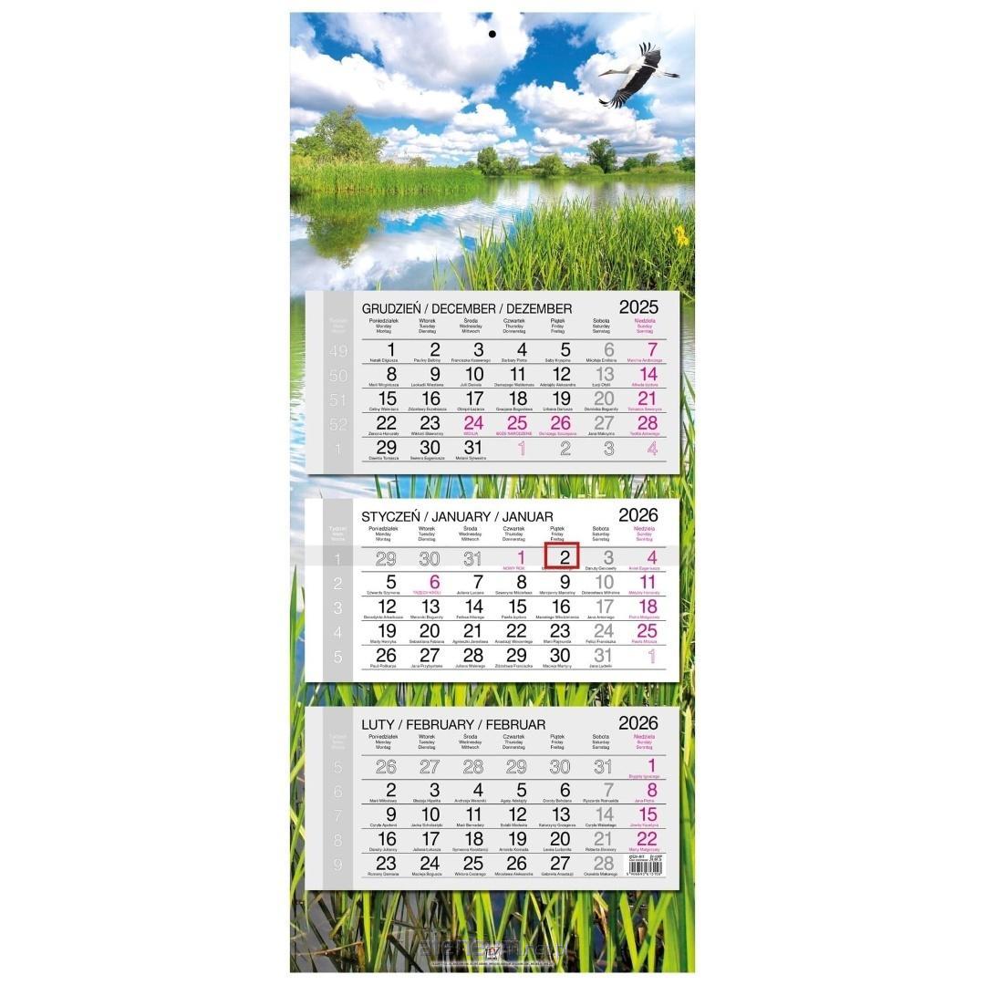 Kalendarz 2026 trójdzielny główka płaska Mazury