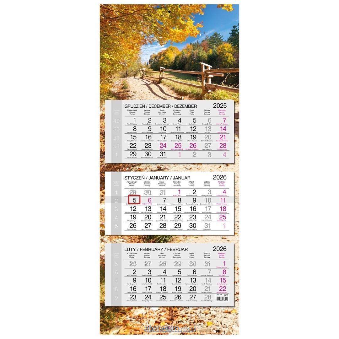 * kalendarz ścienny, trójdzielny z główką płaską z zadrukiem na całych pleckach