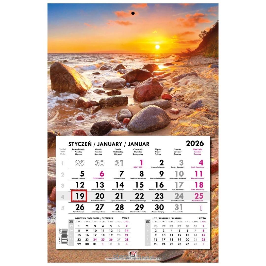* kalendarz ścienny, jednodzielny z główką płaską z zadrukiem na całych pleckach