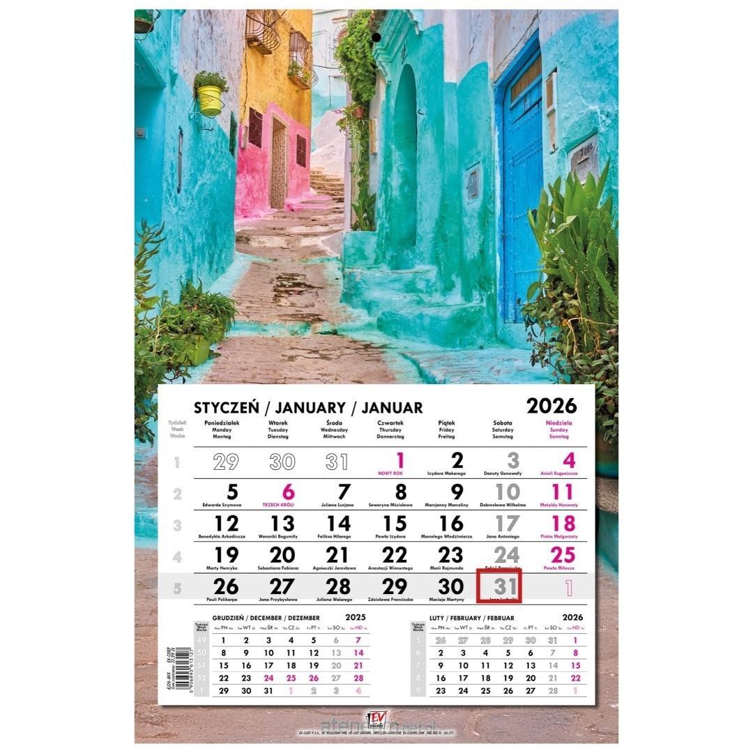 * kalendarz ścienny, jednodzielny z główką płaską z zadrukiem na całych pleckach