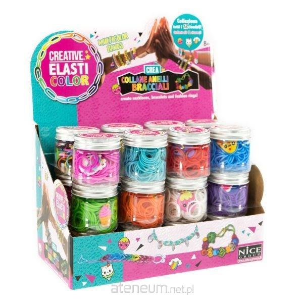Słoiki z kolorowymi gumkami do tworzenia wielu bransoletek i naszyjników. Baw się mieszając wszystkie kolory i stwórz wiele fantastycznych, oryginalnych akcesoriów. Dostępne w 24 różnych kolorach: zbierz je wszystkie! Są idealne do użycia z ramkami zestawów Elasticolor.