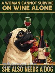 Malowanie po numerach - Plakat. Wino i pies 30x40