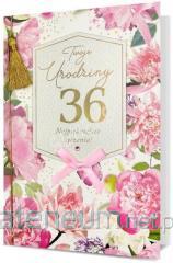 Kartka jest bogato i różnorodnie zdobiona (zależnie od wzoru: metaliczna folia, lakier perłowy,