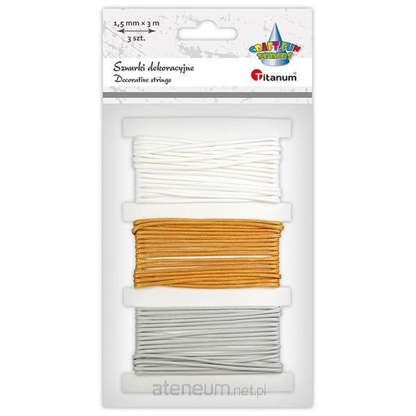 Sznurki poliestrowe 1,5mmx3m biały, srebrny, złoty 3szt.