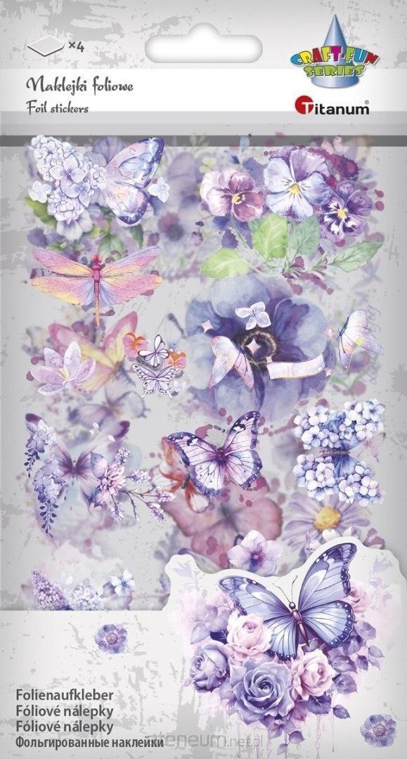 Naklejki foliowe 4 plansze motyle, kwiaty tonacja fioletowa