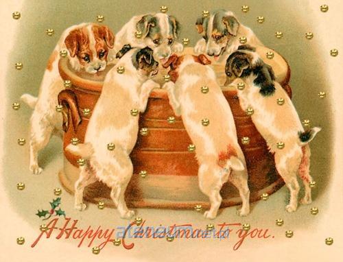 Karnet Święta kwadrat Świąteczne psy La la la