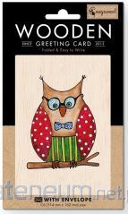 Karnet drewniany C6 + koperta Sowa