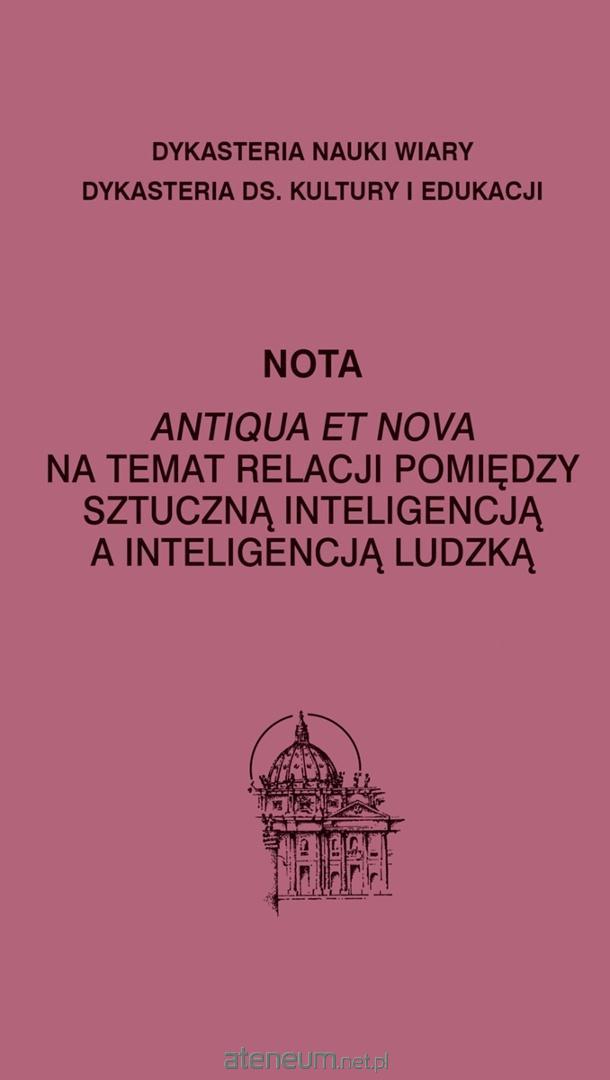 Nota "Antiquae et nova" to wspólny dokument Dykasterii Nauki Wiary i Dykasterii ds. Kultury i Edukacji, który w przystępny sposób przedstawia stanowisko Kościoła katolickiego w kwestii sztucznej inteligencji w kontekście nauczania teologicznego i etycznego Kościoła. Została zwrócona uwaga na różnice między sztuczną inteligencją a inteligencją ludzką, przedstawiono chrześcijańskie rozumienie ludzkiej inteligencji, podkreślając nakierowanie na poszukiwanie Prawdy oraz dobro osoby ludzkiej. Omówione zostały kwestie etyczne i problem odpowiedzialności podczas używania AI, a w ostatniej części dokumentu poruszone zostały zagadnienia szczegółowe, czyli potencjalne szanse i wyzwania, wiążące się z AI w konkretnych aspektach, jak społeczeństwo, edukacja, ekonomia i praca, dezinformacja, prywatność czy wojna.