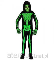 Strój dziecięcy w klasycznym czarnym kolorze to nie tylko przebranie, ale prawdziwa przepustka do świata zabawy i fantazji. Wykonany z lekkiego, przyjemnego w dotyku materiału, zapewnia swobodę ruchów, dzięki czemu dziecko może biegać, tańczyć i bawić się bez ograniczeń. Doszyty kaptur dodaje kostiumowi charakteru, a nadruk zielonego szkieletu od głowy po stopy sprawia, że cała stylizacja wygląda efektownie i zabawnie jednocześnie. To idealny strój na Halloween, karnawał, przyjęcia tematyczne czy szkolne przedstawienia, który pozwala maluchowi wejść w rolę i poczuć się jak bohater własnej historii. Dzięki starannemu wykonaniu i wygodnemu krojowi kostium zapewnia komfort noszenia nawet przez długie godziny zabawy, a czarny materiał w połączeniu z kontrastowym nadrukiem szkieletu przyciąga spojrzenia i zachwyca szczegółami. Strój dziecięcy "Szkielet Kościotrup" to gwarancja świetnej zabawy, kreatywności i niezapomnianych wspomnień, które zostaną w pamięci Twojego dziecka na długo