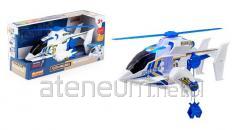 Wciel się w rolę dzielnego strażaka, spieszącego na ratunek swym nowoczesnym helikopterem strażackim! Ten zabawkowy pojazd posiada wiele ciekawych funkcji, które uczynią zabawę podwójnie ekscytującą. Znajdziemy tu ręcznie obracane śmigła i ręcznie otwierane drzwi, ruchomy reflektor, a nawet szalupę ratunkową, za opuszczanie i podnoszenie której, odpowiada specjalna korbka. Jakby tego było mało, na boku pojazdu znajduje się przycisk, aktywujący światełka oraz realistyczne dźwięki.