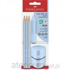 Ołówek 3szt + gumka + temperówka Grip błękitny