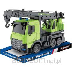 Zdalnie sterowany dźwig, radio 2,4GHz, pełny obrót o 360 stopni, jazda po ramieniu do przodu i do tyłu, podnoszenie i opuszczanie haka, światło, akcesoria: wiaderko, taca, otwierana kula. Wysokość: 150 cm, 3l+
