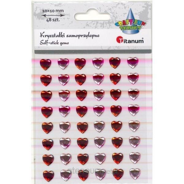 Kryształki samoprzylepne serca 10x10mm czerwone, bladoróżowe 48szt.