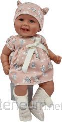 Głowa, dłonie oraz nogi do ud wykonane są z winylu, korpus miękki wykonany z materiału. Ubranko można zdjęć i prać.