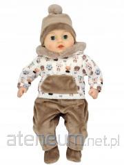 Głowa, dłonie oraz nogi do ud wykonane są z winylu, korpus miękki wykonany z materiału. Ubranko można zdjęć i prać.