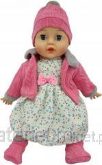 Głowa, dłonie oraz stopy lalki wykonane są z winylu, korpus miękki wykonany z materiału. Ubranko można zdjęć i prać.